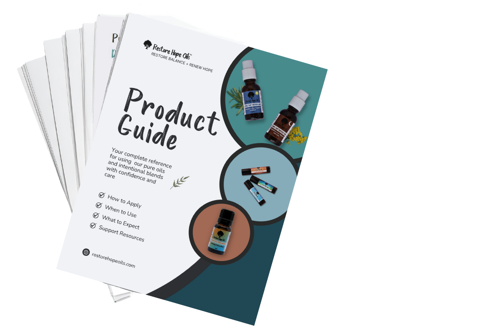Enter your email below to download the 119-page Restore Hope Oils Product Guide and explore every blend, single oil, and use in one complete reference.