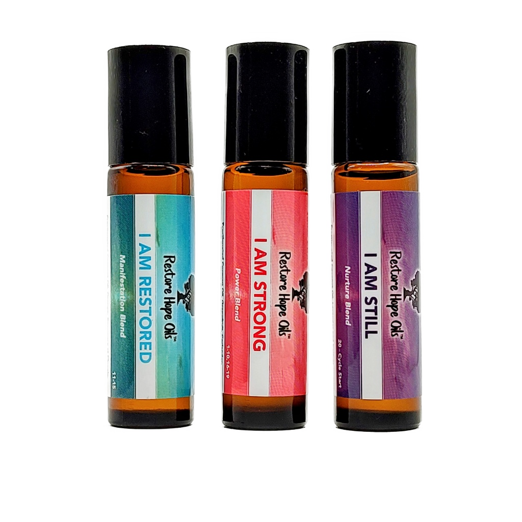I Am Strong™ energizes during power phases when you're ready to take on the world. I Am Restored™ supports mental clarity and digestion during manifestation periods when you're creating and building. I Am Still™ provides the calming comfort your body craves during nurture periods when rest feels necessary, not guilty.